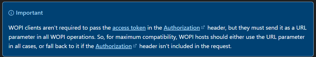 官网也提到了Authorization,这种方式跟spring-security一样通过 * 进行验证,但是不是必须的,因为市面上存在很多不同厂商提供的wopi服务器,他们不一定,会遵循这个